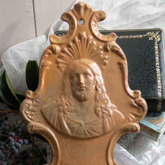 French Antique Stoneware Jug with Ochre Glazed Interior