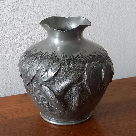 French Vintage Decorative Floral Pewter Pot Vase Signed By The Artist