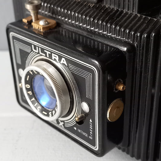 Mid-century camera with bakelite body and art deco styling from France, Ultra Fex vintage camera