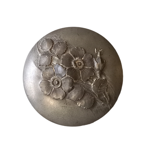 Small Decorative Vintage Pewter Pot with Floral Lid