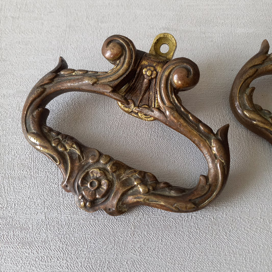 Pair of French Antique Decorative Brass Bronze Drawer Handles
