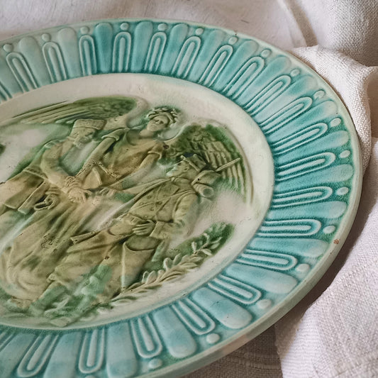 French Antique Decorative Majolica Wall Plate, Franco-Russian Alliance Souvenir