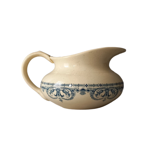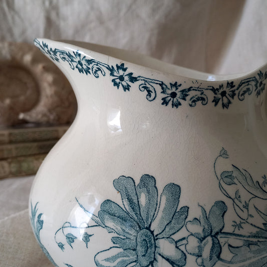 Antique Ironstone Jug with Blue Green Floral Pattern
