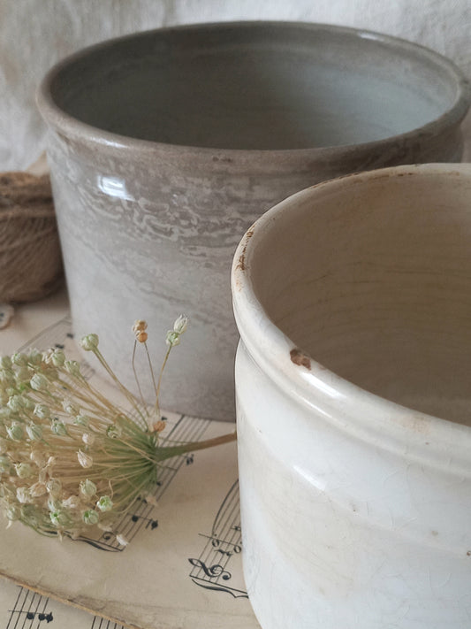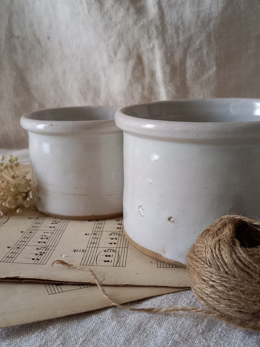 French Antique White Glazed Pottery Jam Pots