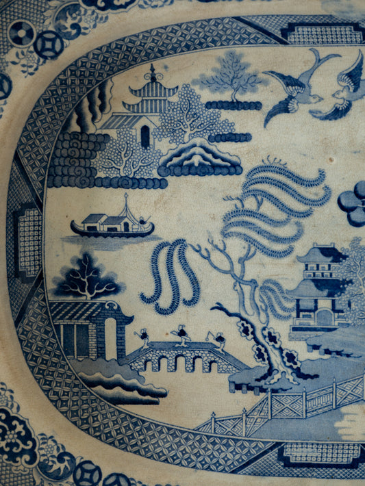 LARGE Antique Ironstone Willow Ware Plate marked Staffordshire