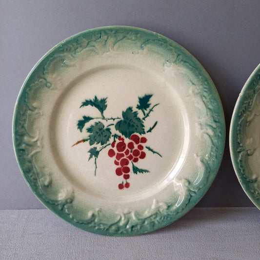 Pair Small Antique Ironstone Plates With Fruit Patterns