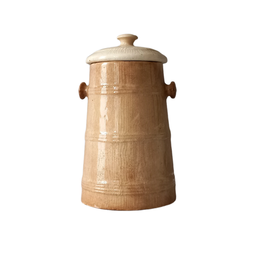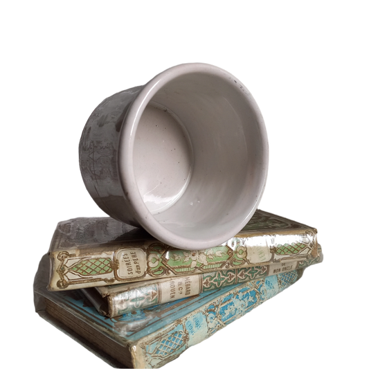 French antique ironstone crock pot or preserve pot that is tea stained and manufactured by Creil et Montereau