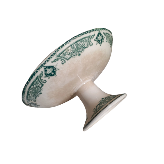 French antique ironstone compotier or footed cake plate with teal floral pattern, decorative fruit dish, dish for cakes