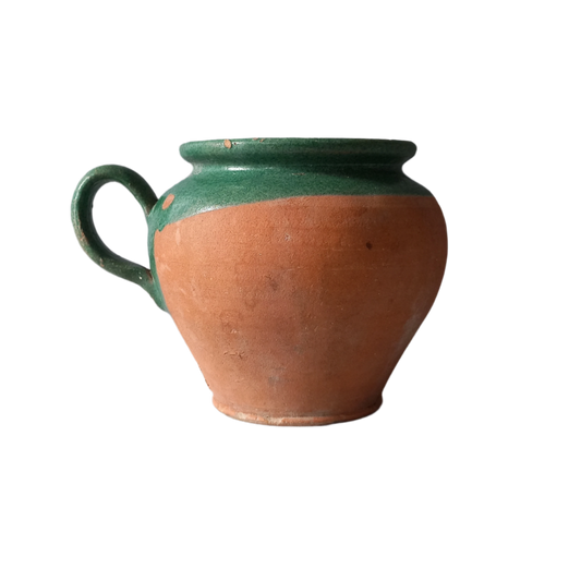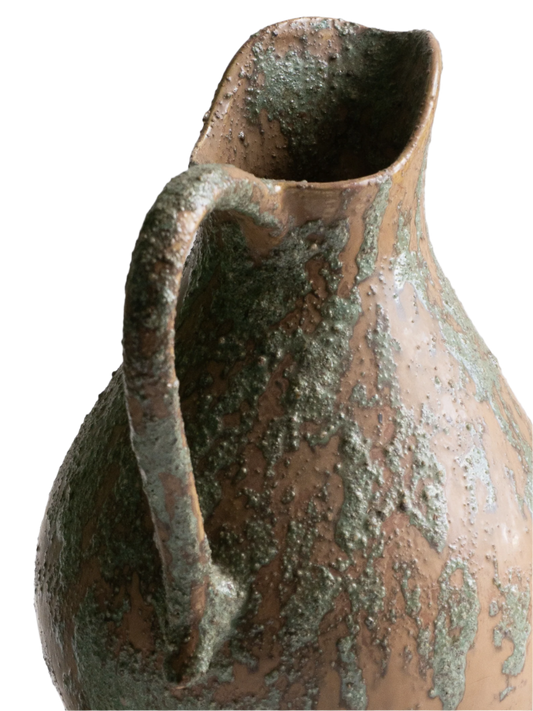 French Vintage Pottery Pitcher Or Jug With Earthy And Green Tones