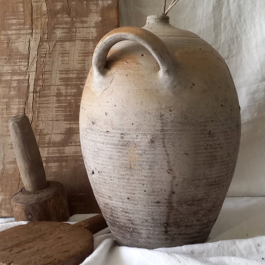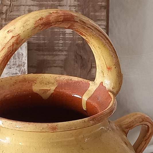 French Antique Stoneware Jug with Ochre Glazed Interior