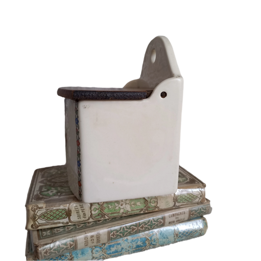 French vintage ceramic salt cellar with wooden lid, kitchen decor and storage