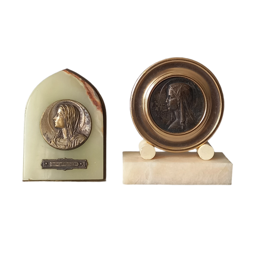 Pair French Vintage Religious Souvenirs, Virgin Mary Medals