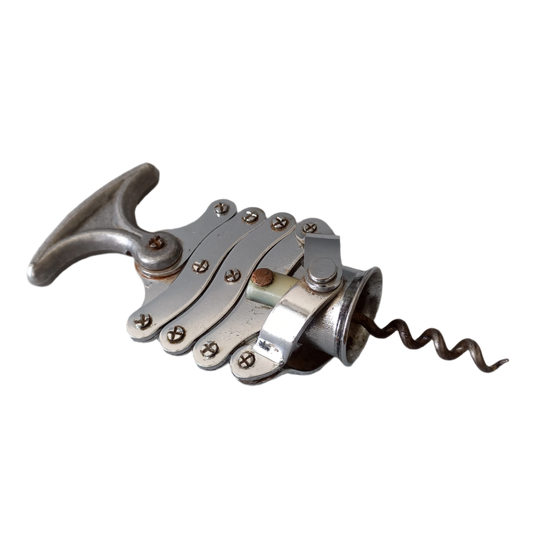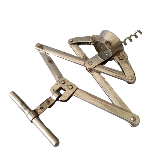 French vintage corkscrew bottle opener, concertina cork remover