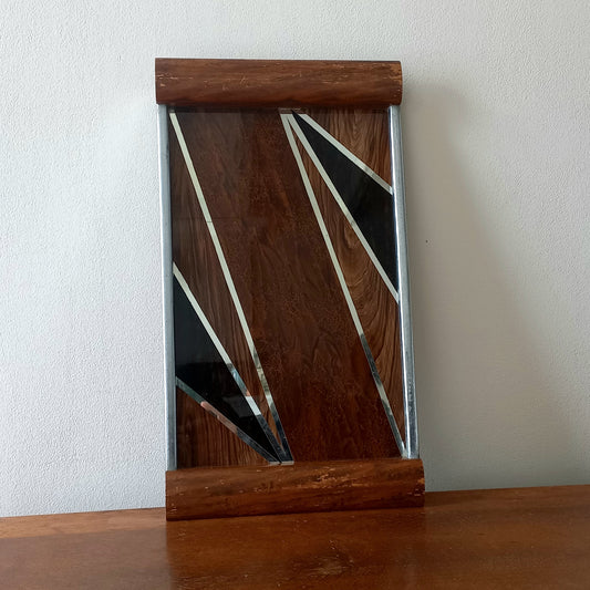 Vintage French Wood & Glass Tray, Mid-century Decorative Accent c.1950s