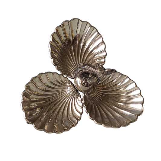Art deco clam shell and dolphin dish, french vintage silver plated clam bonbon dish