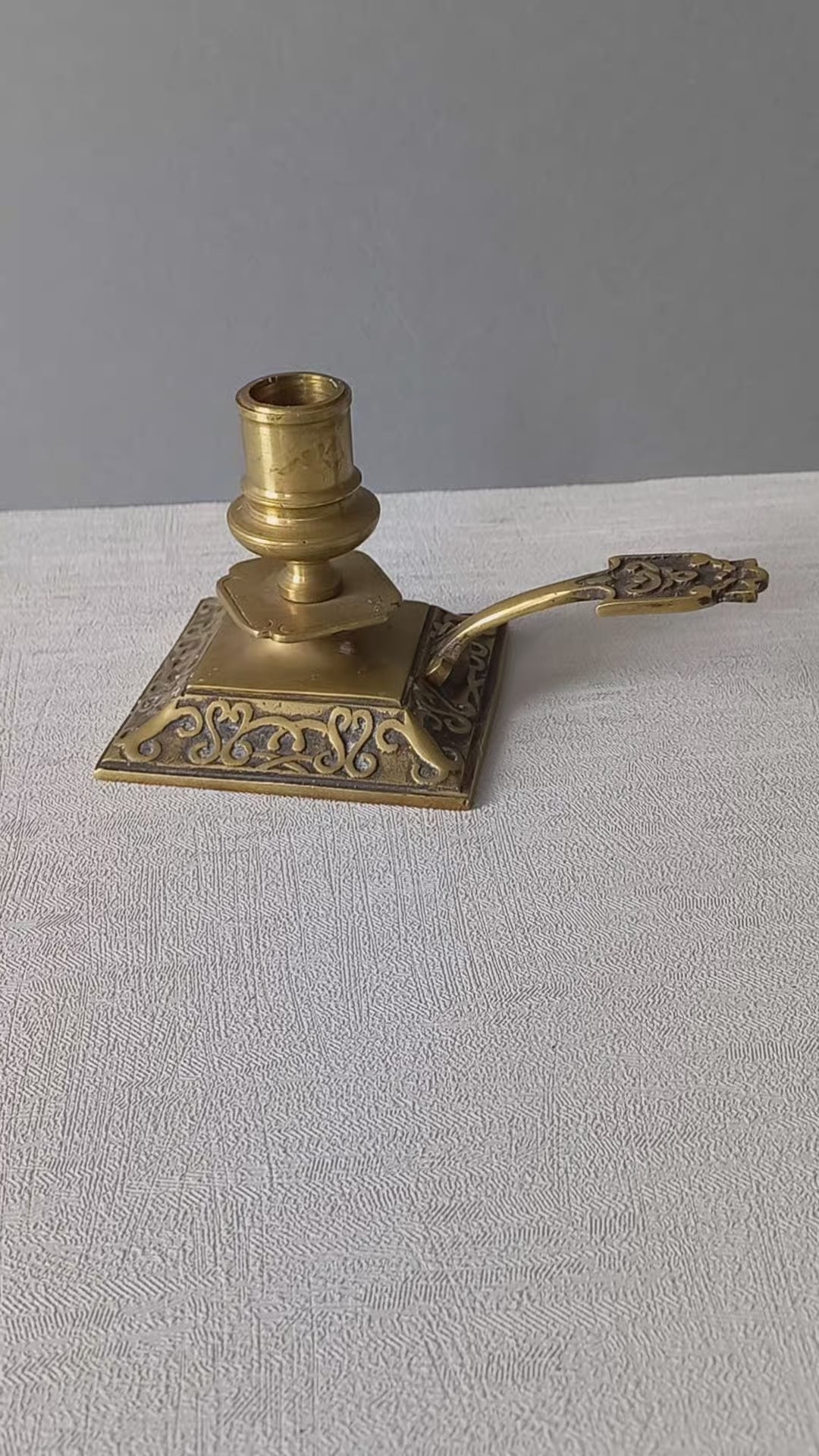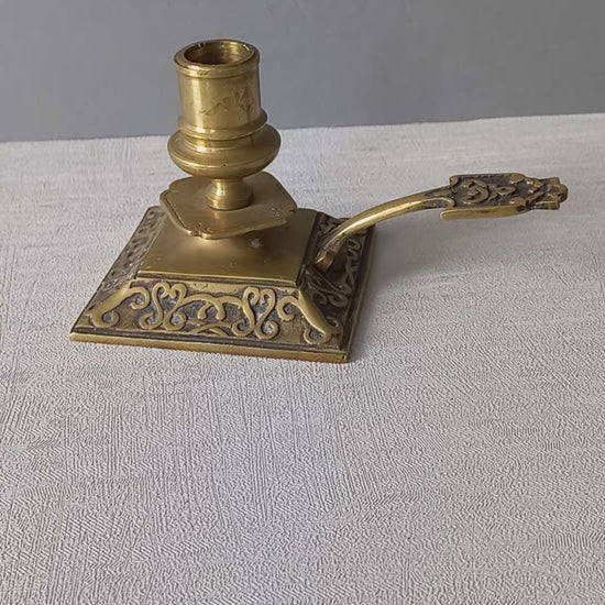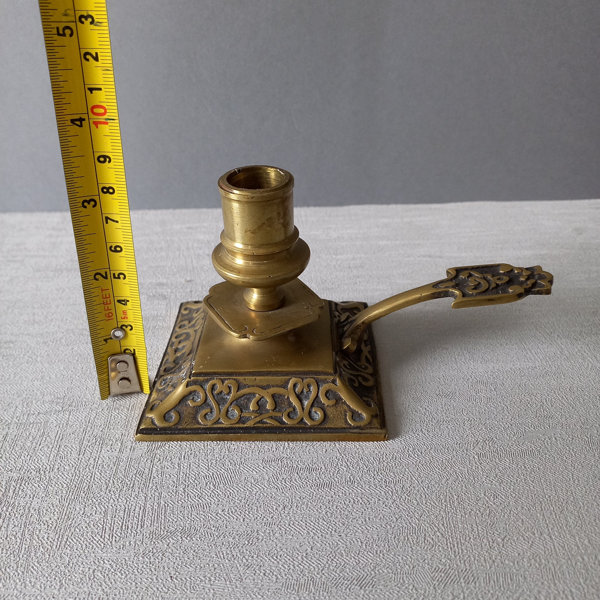A small French vintage or antique brass chamber-stick, a quality piece with ornate decoration