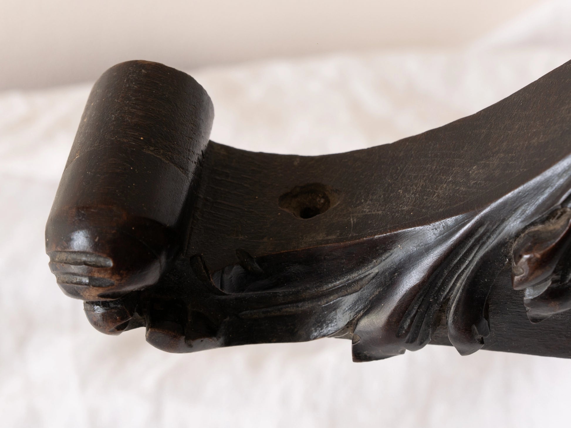 A stunning French antique carved dark wooden furniture pediment highly decorative and expertly crafted by a carpenter - this is a very heavy, quality piece and will look fabulous in any interior.