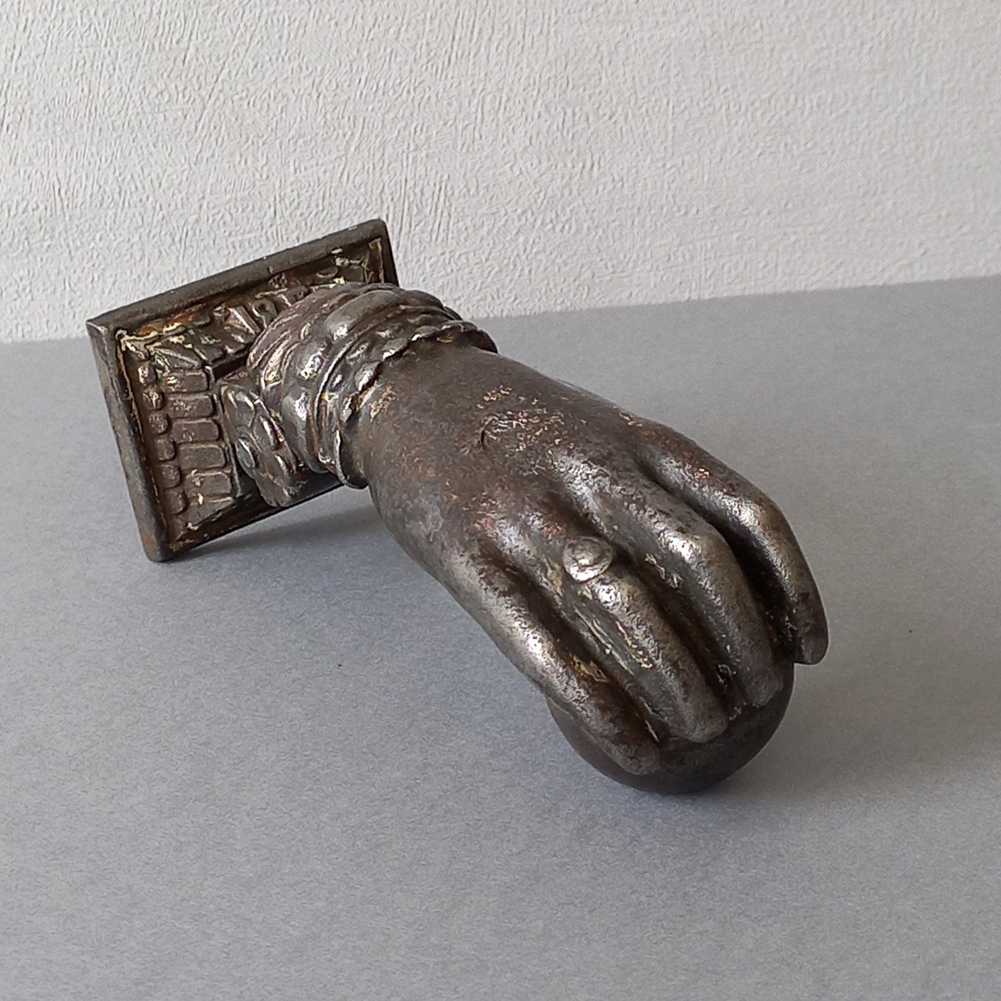 French antique door knocker made from cast iron, female hand door knocker