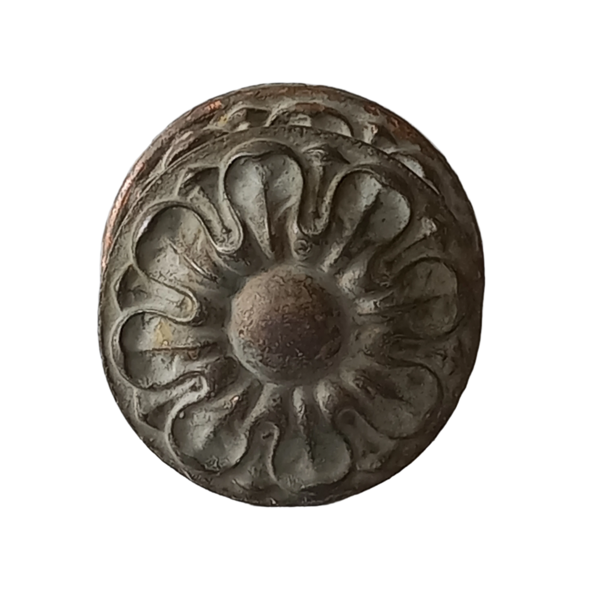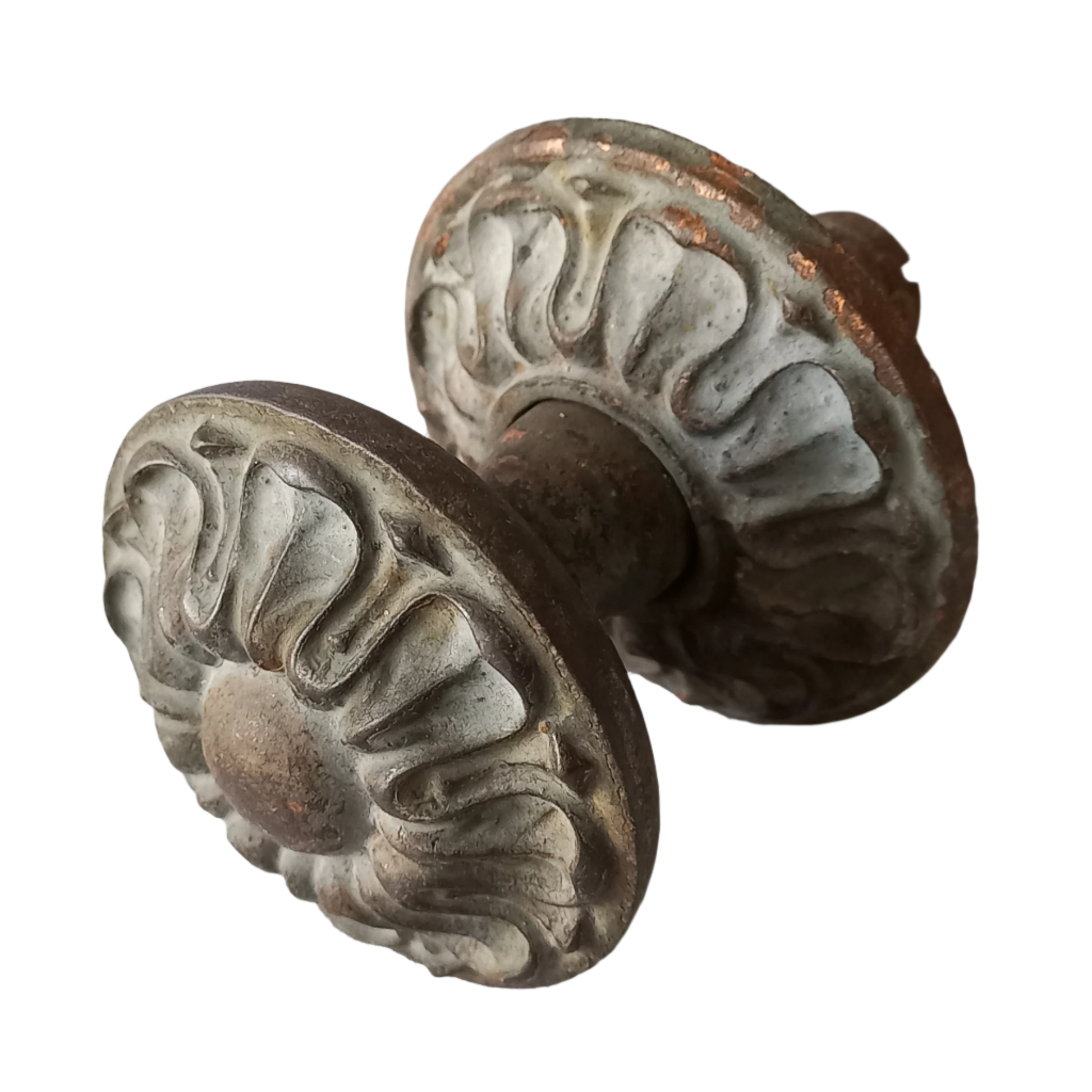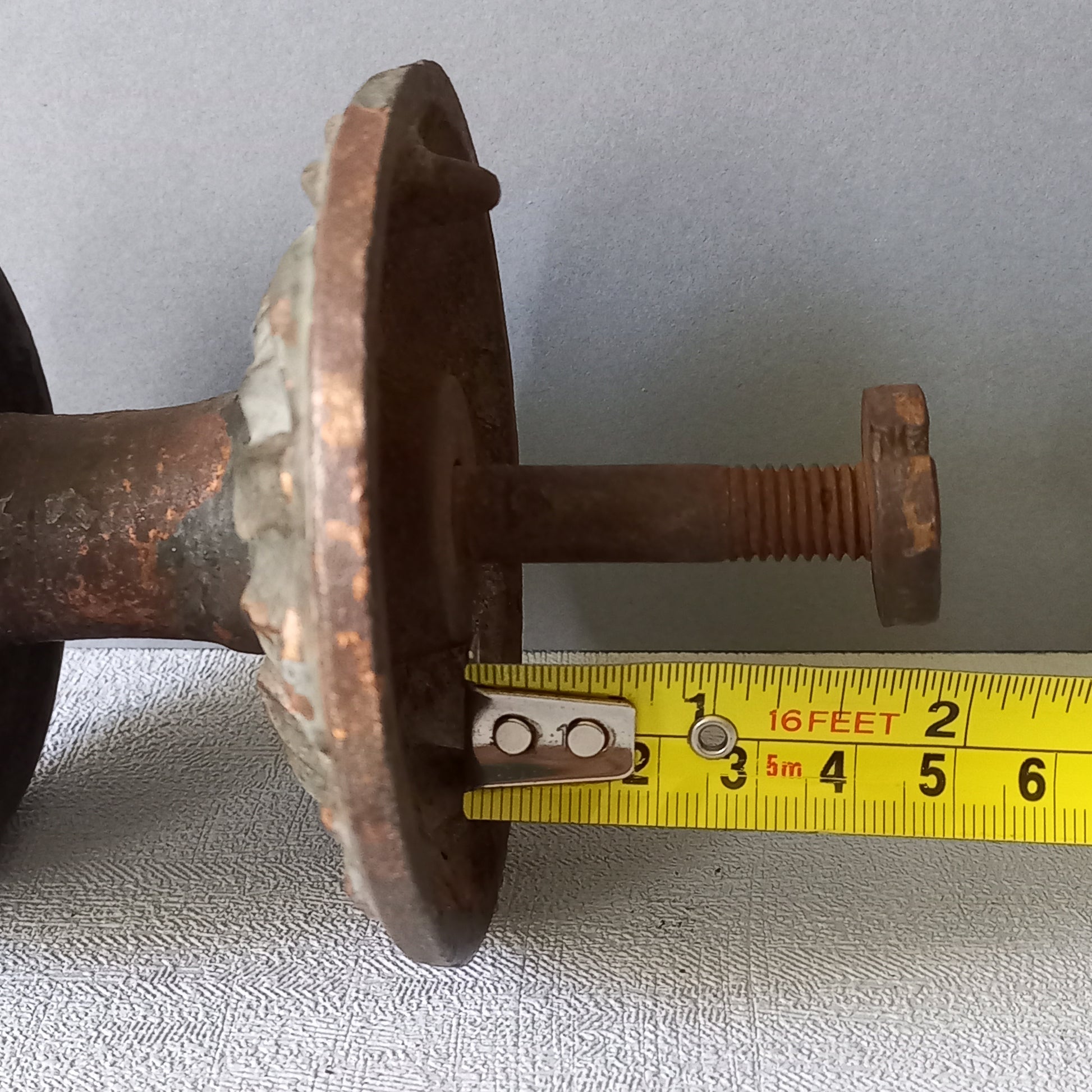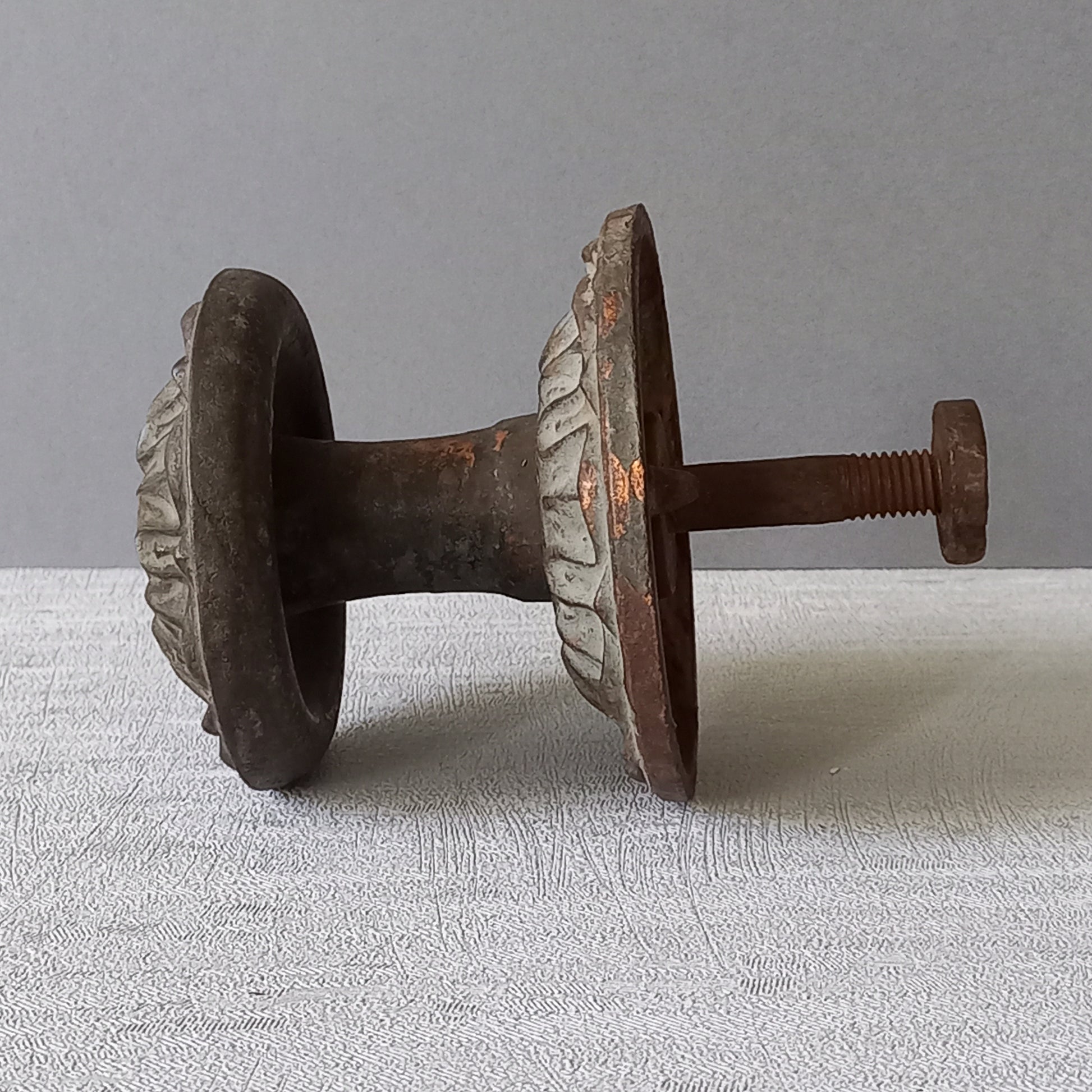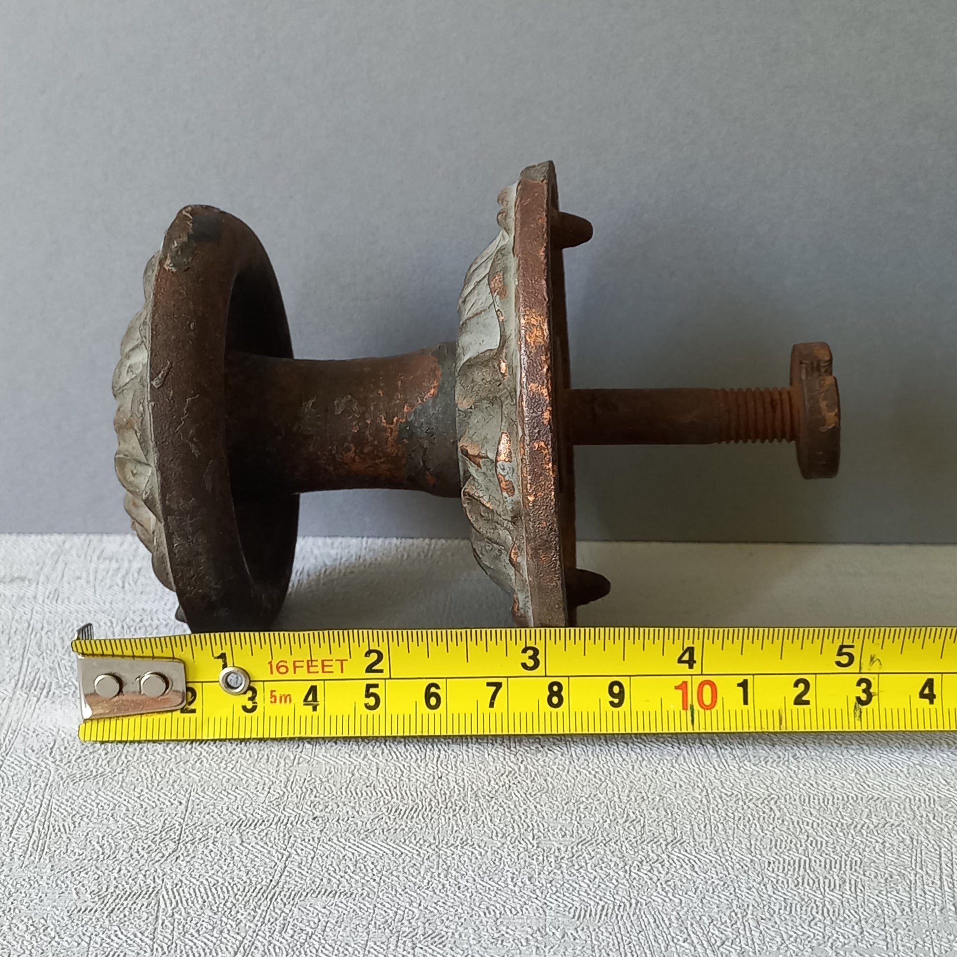 Original French antique decorative cast iron door pull with lots of patina of age as can be seen from the photos. A heavy and solid piece to add the finishing touch to your door. There is a maker's mark to the rear (see photos). Please see dimensions and read item's condition details listed below.