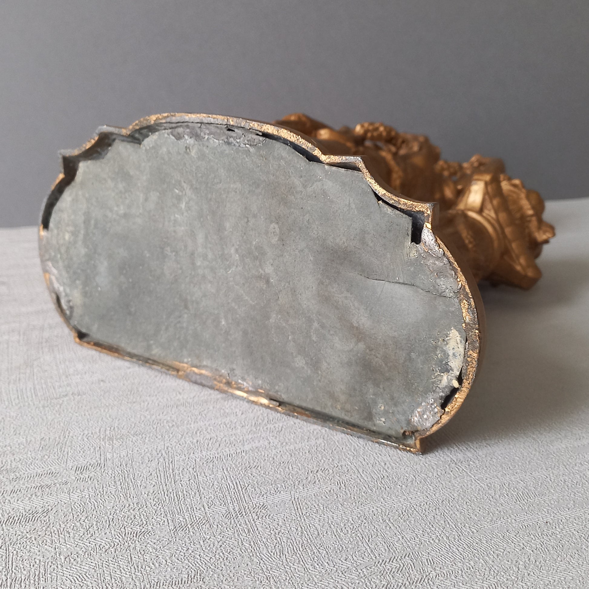 Condition: good solid used antique condition with age-related wear such as chips to the gold/bronze finish and signs that the figurine was probably repainted at some time during it's life. Underneath and out of sight there is a small split in metal base plate
