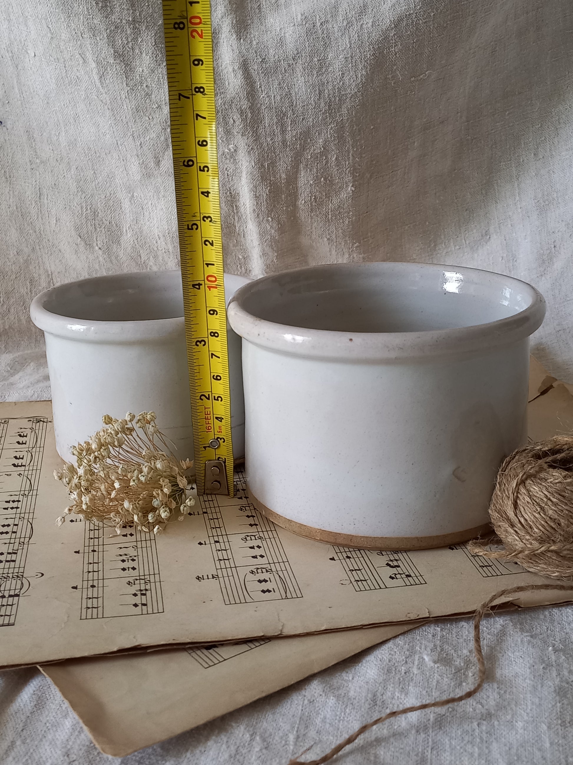 French Antique White Glazed Pottery Jam Pots