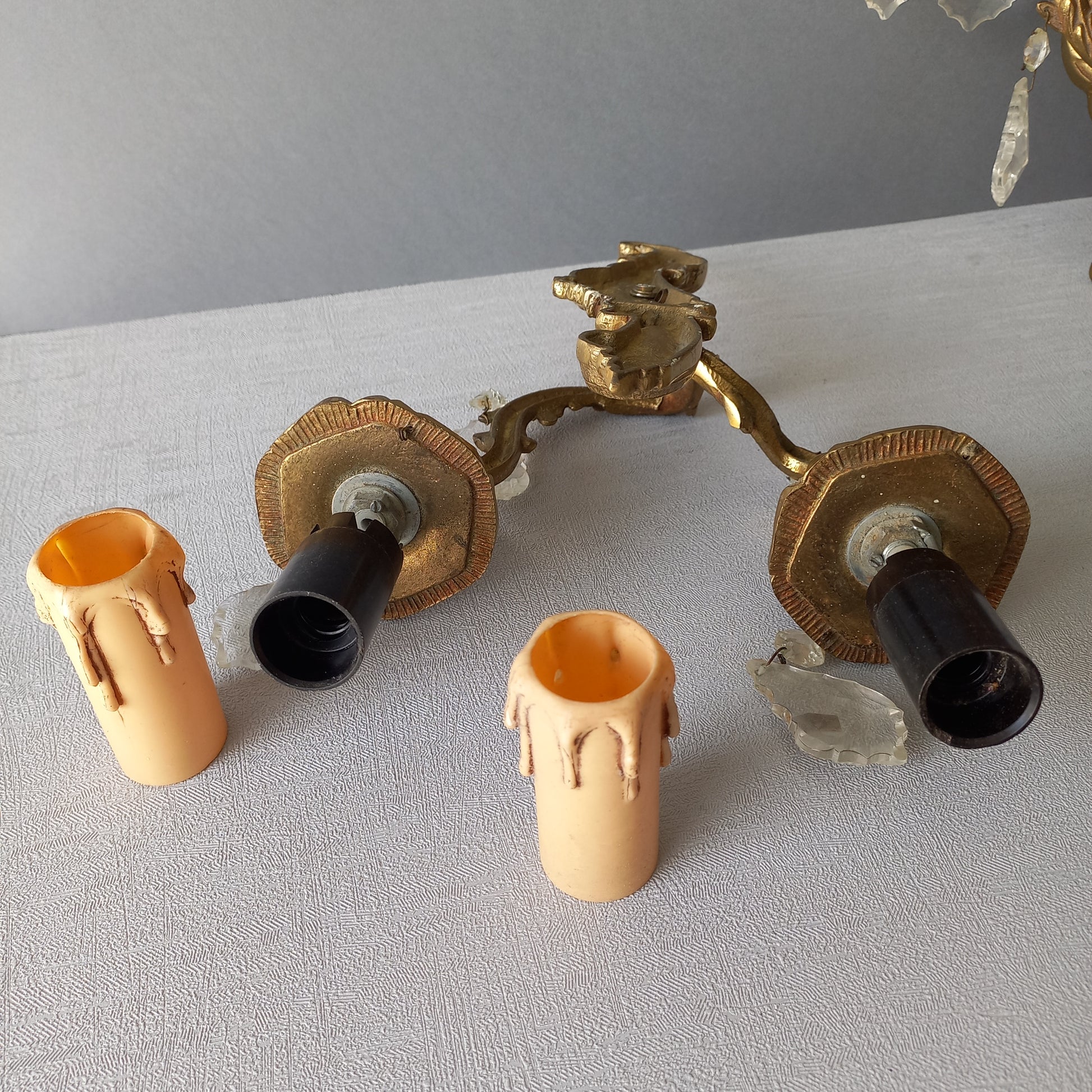 Condition: good used vintage condition with minor age-related wear; these lights had old French wiring which has been removed so the new owners can have them rewired by a professional electrician to the modern safety standards of your own country. There are some nibbles to a couple of the plastic candles although it's the tops so will be mainly out of sight.