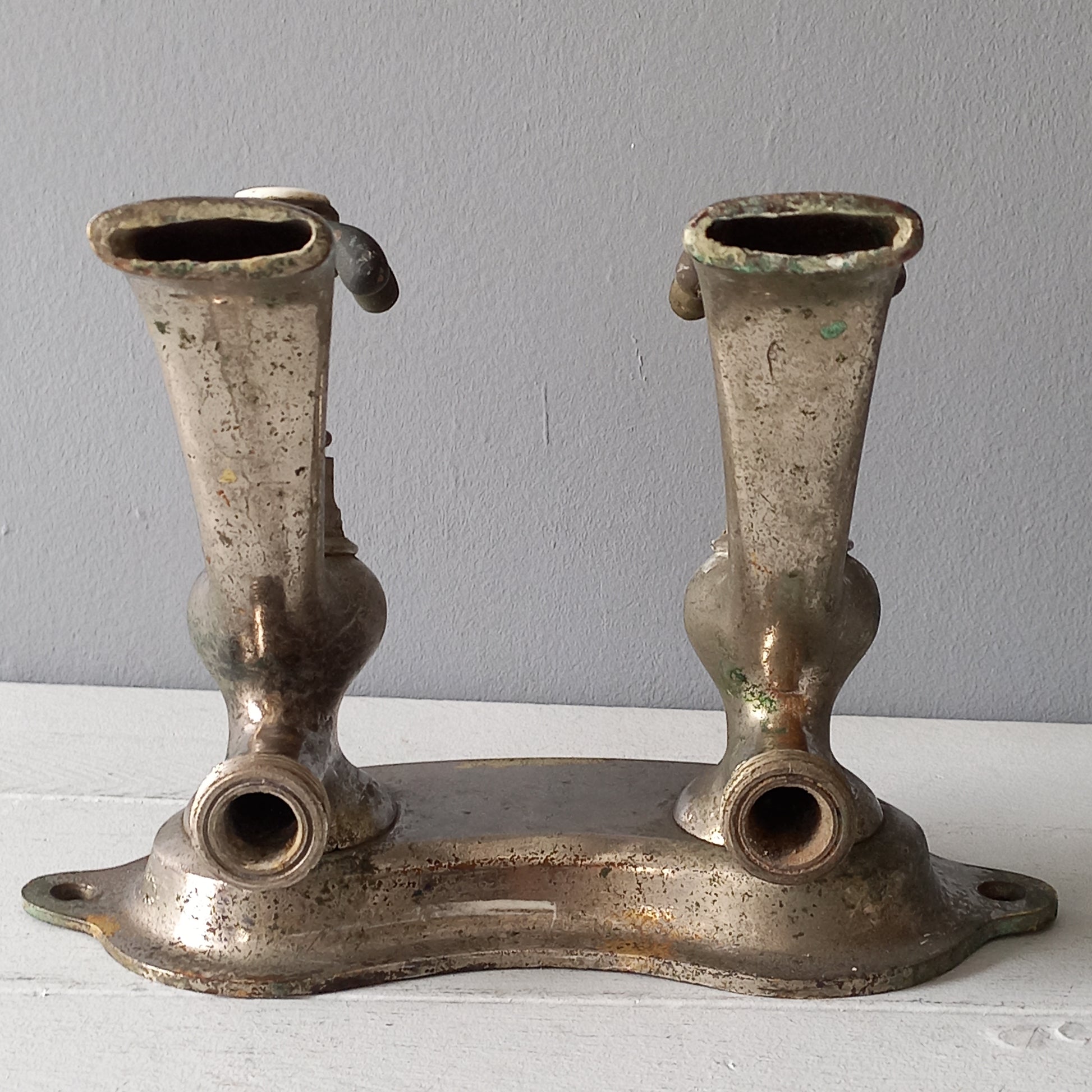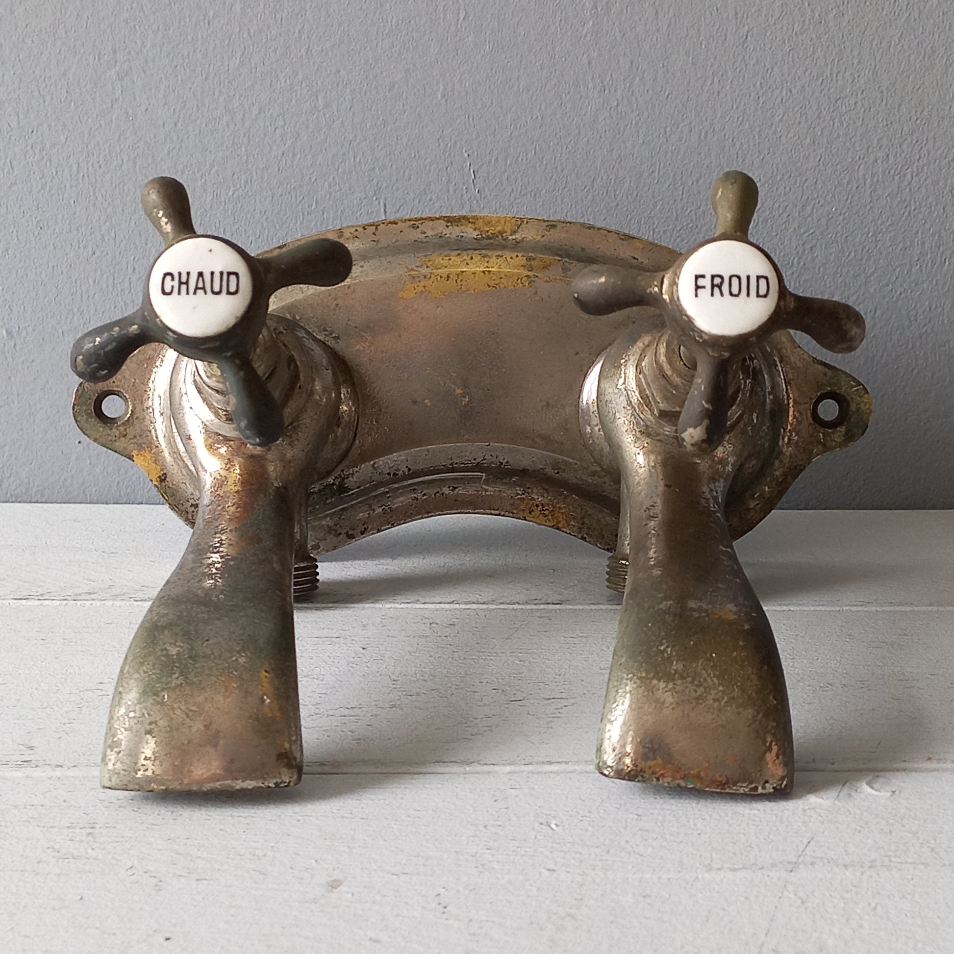 French vintage hot and cold faucet taps that are heavy, quality pieces being sold as a restoration piece or project.