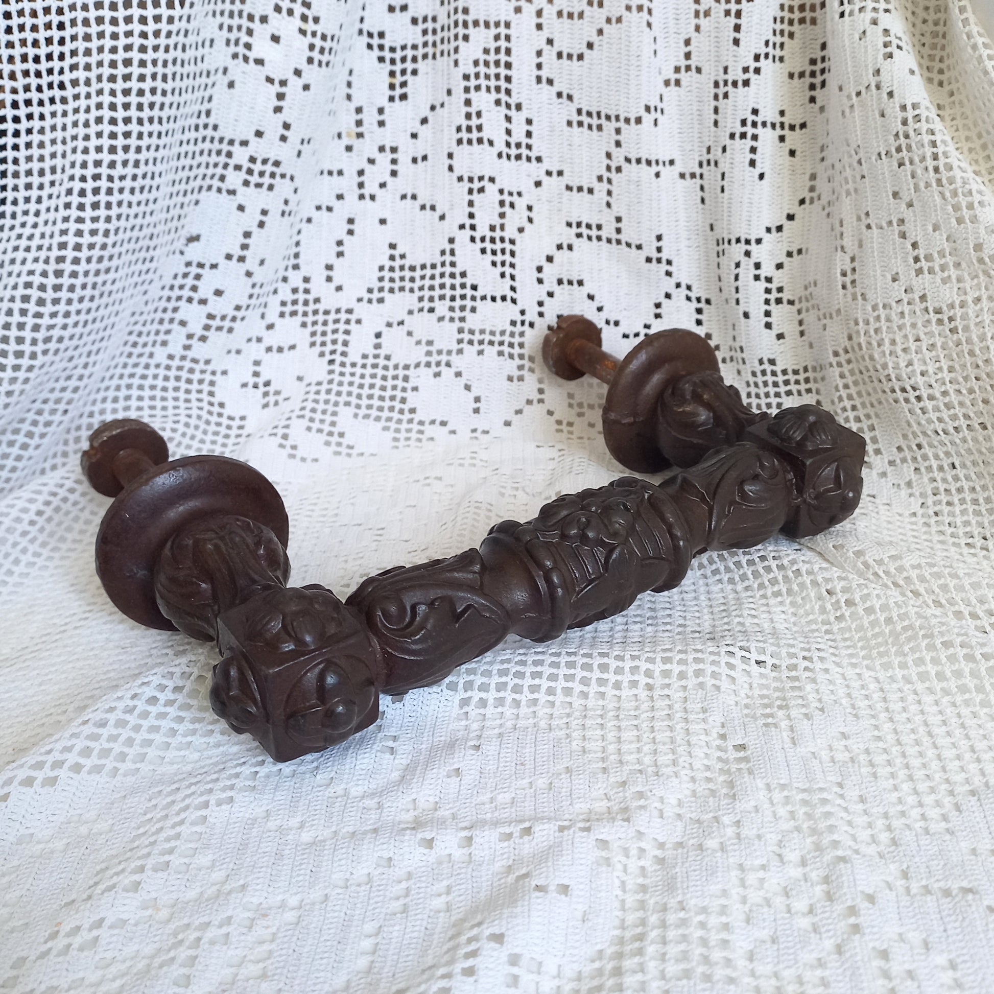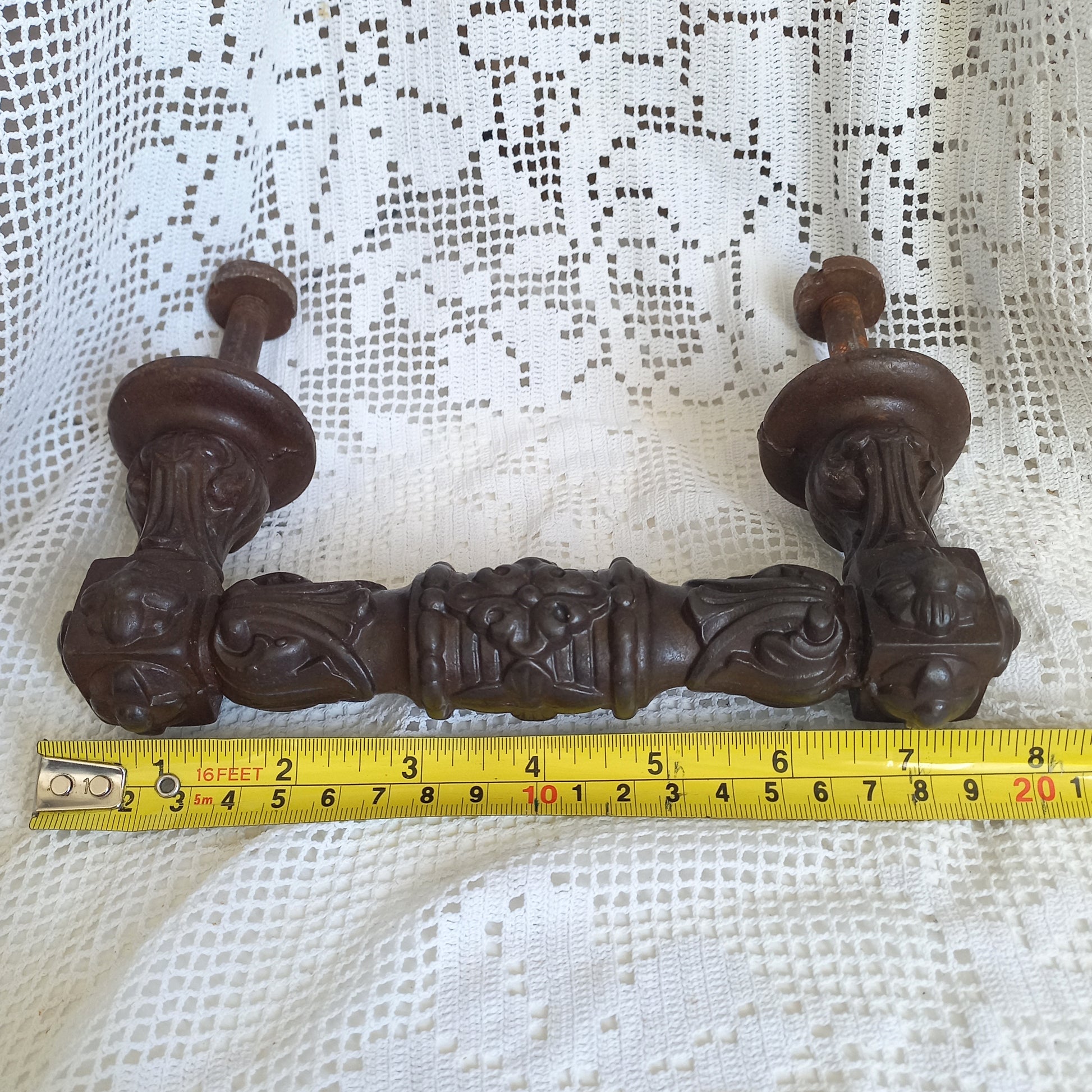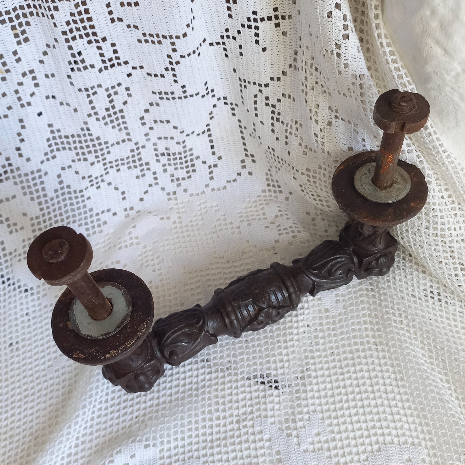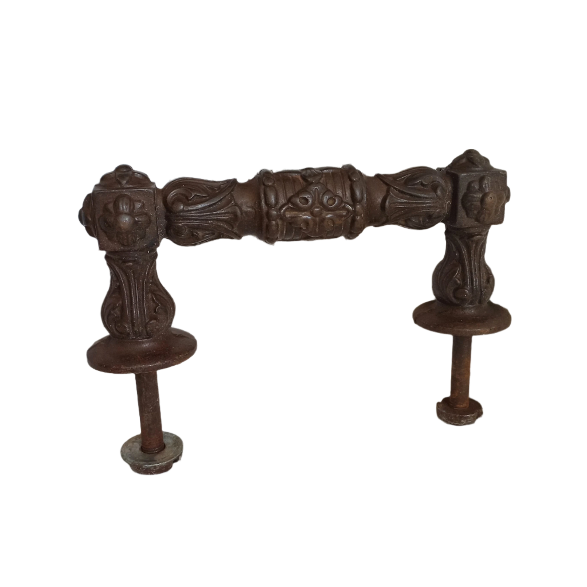 Large antique decorative cast iron door handle or door pull from France, door decor