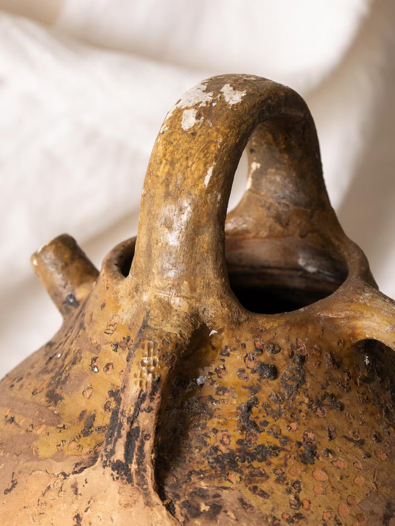 Known locally as a "jarre à huile," this jar would have sat in cool cellars or kitchens, storing precious nut oil pressed on the farm. Today, it offers quiet presence as a sculptural accent or rustic vessel for dried stems.