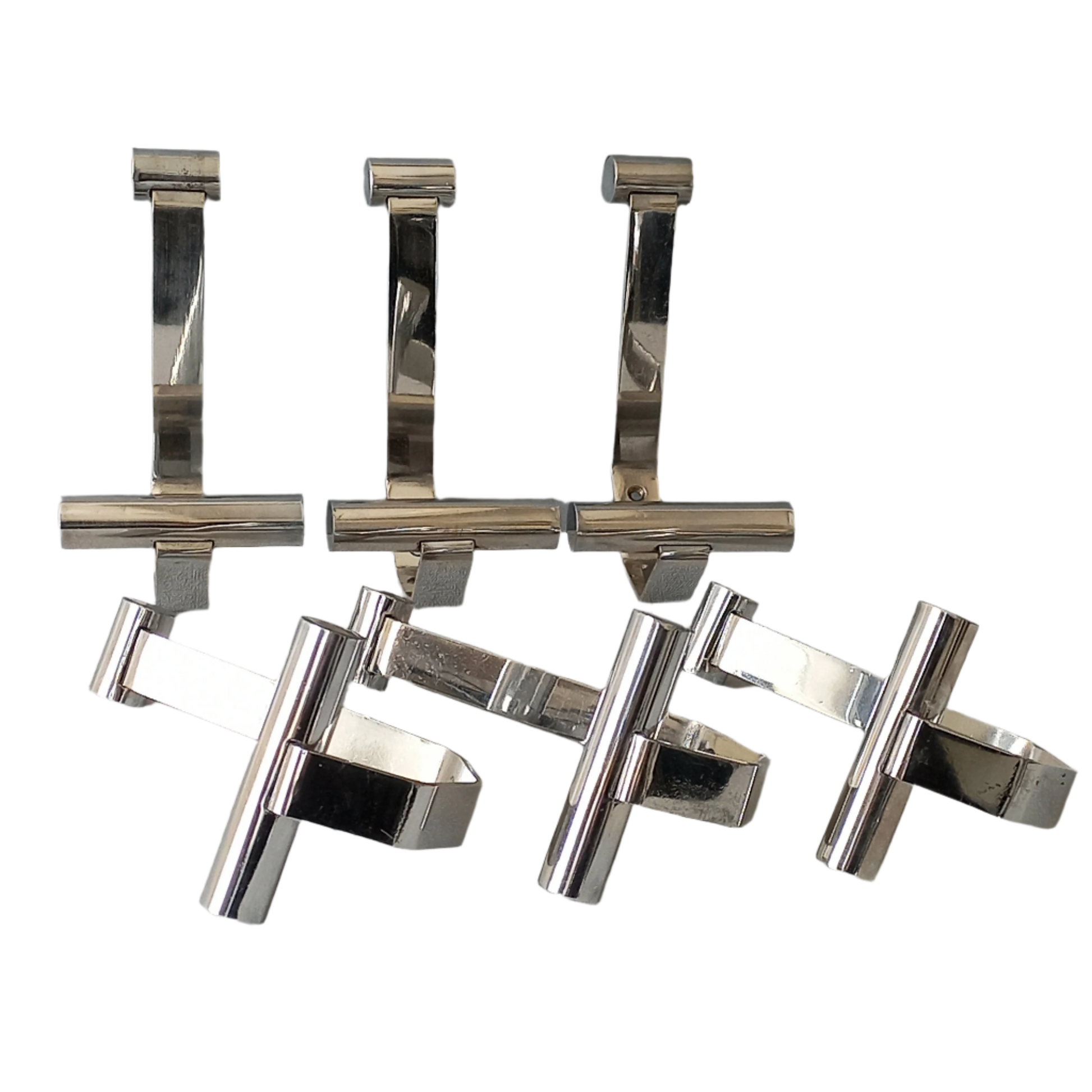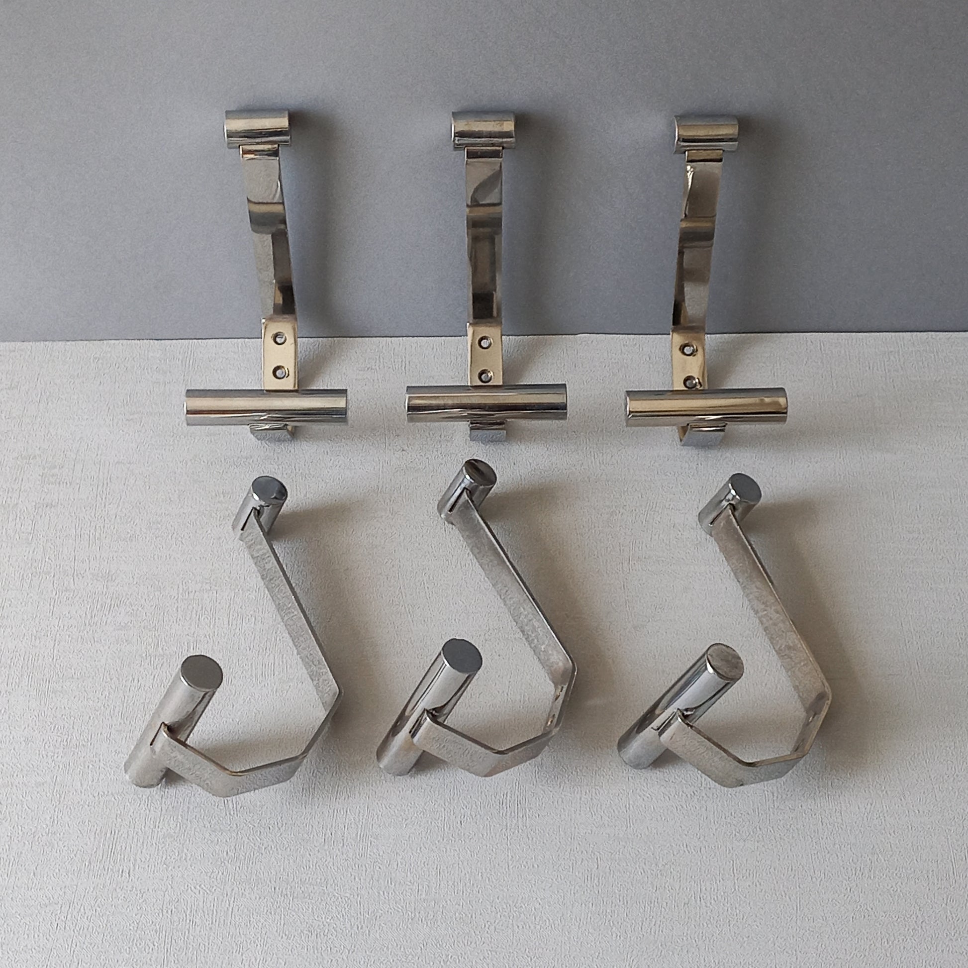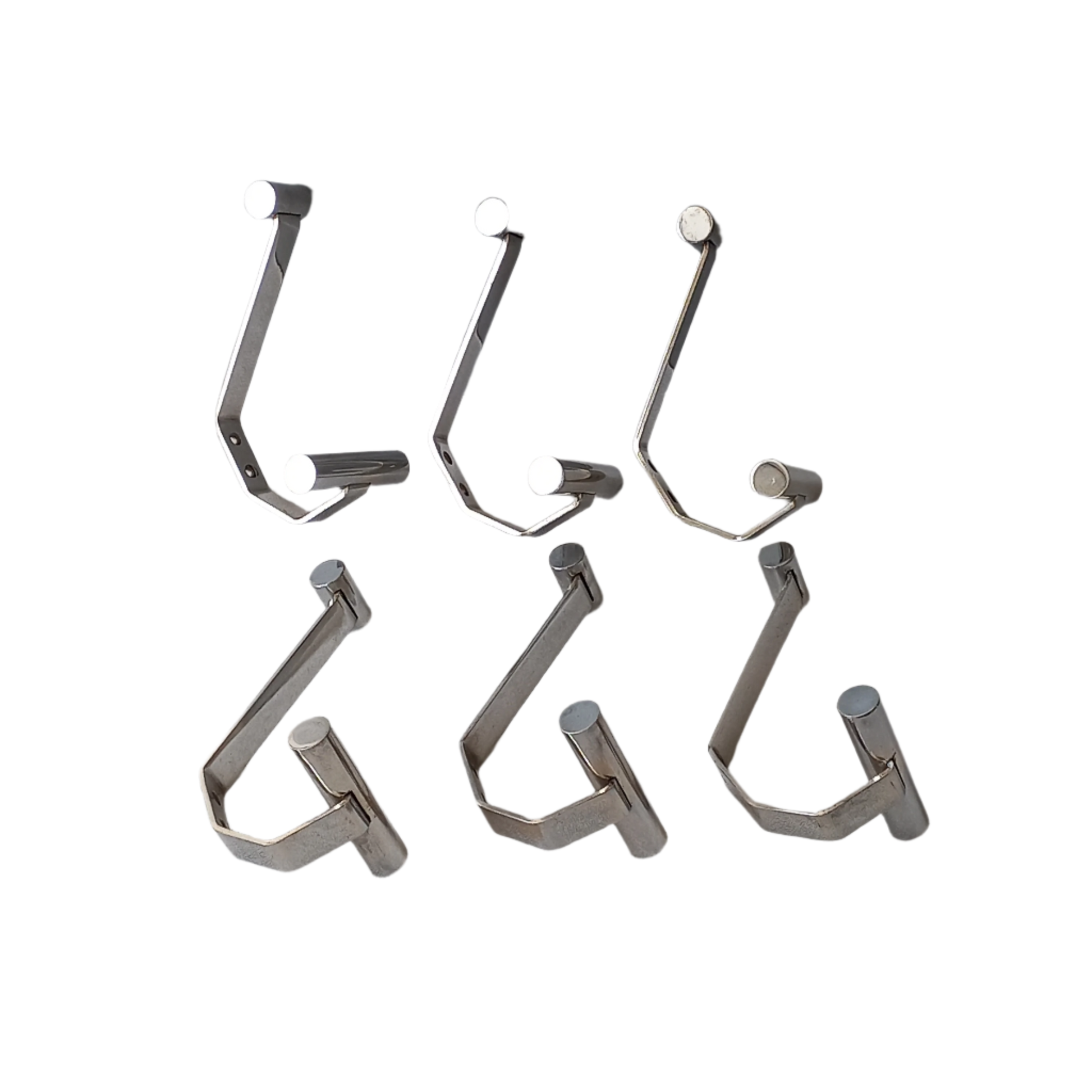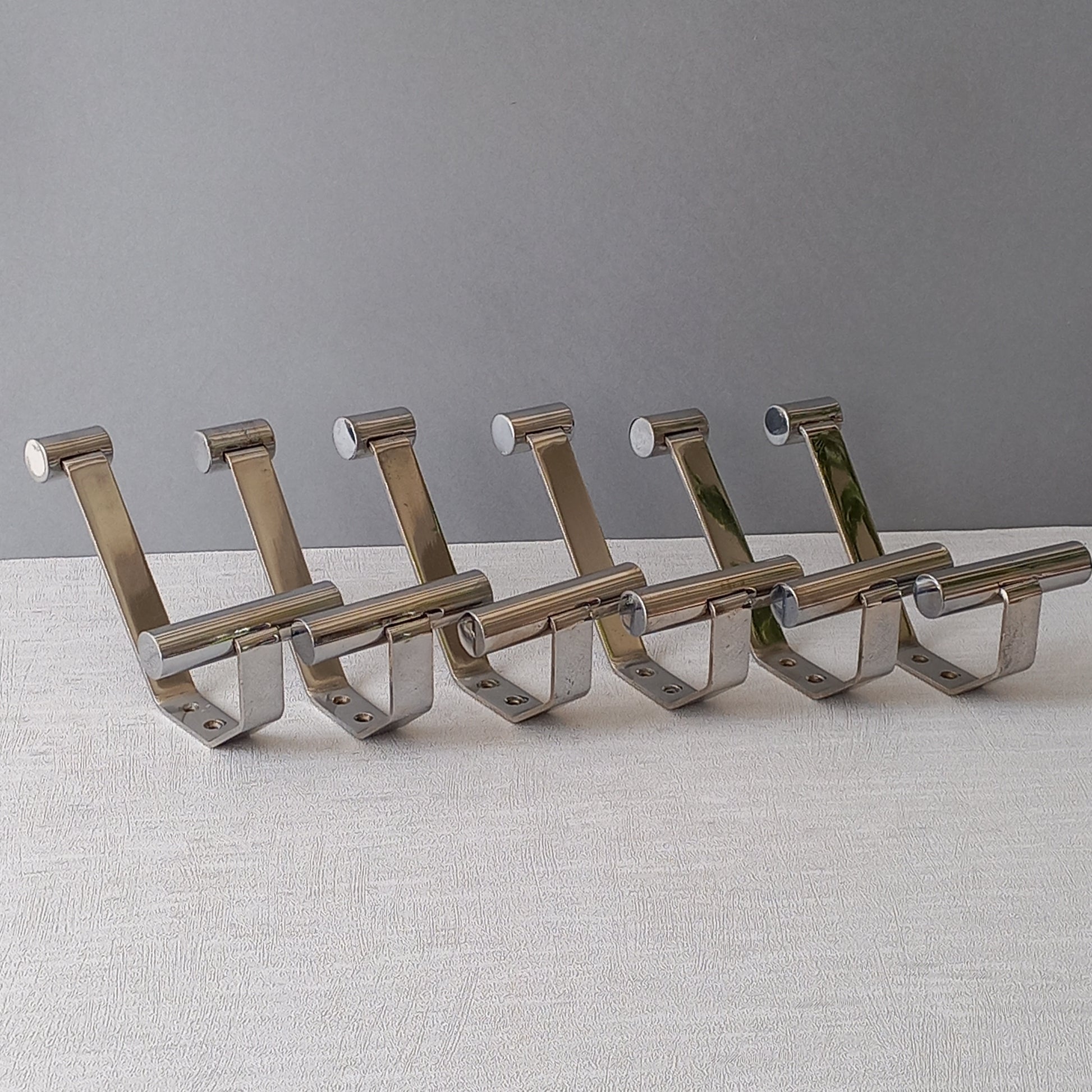 Set of 6 mid-century coat hooks, polished metal, hat hooks