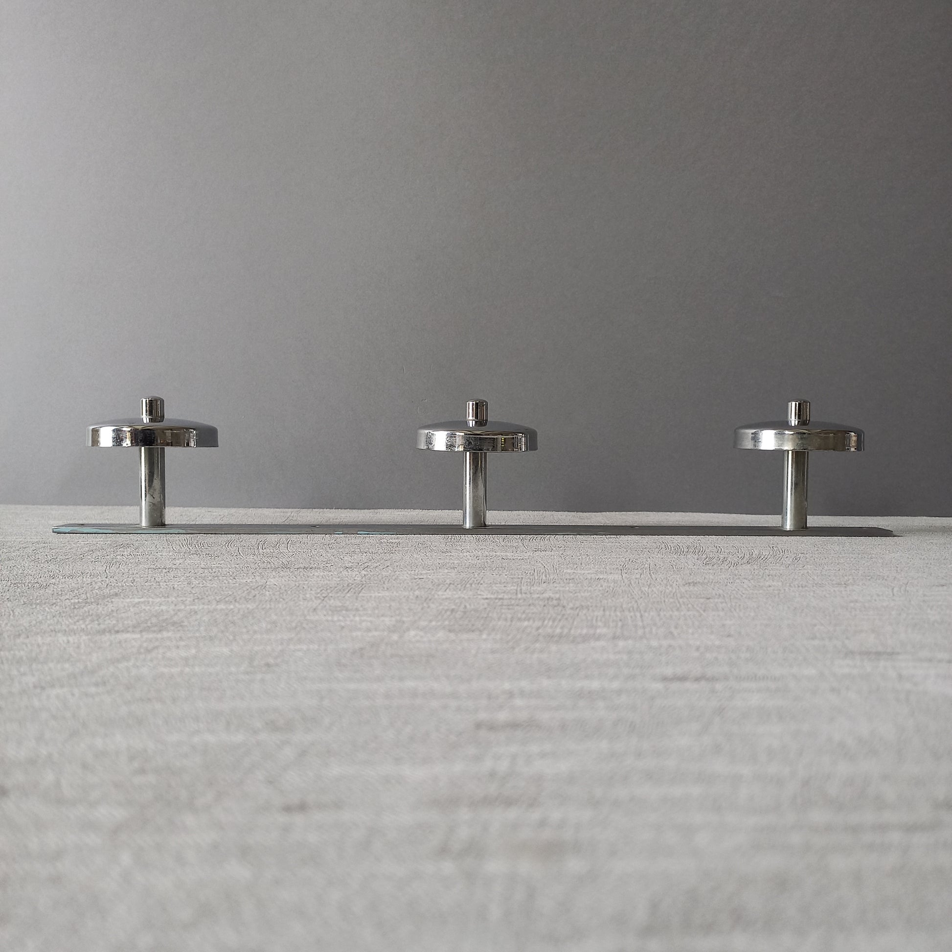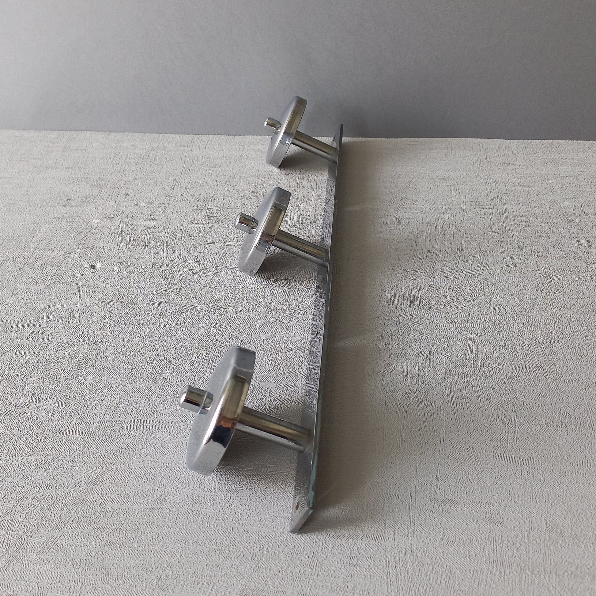 Vintage 3 peg metal coat rack with chrome finish, modernist hat rack