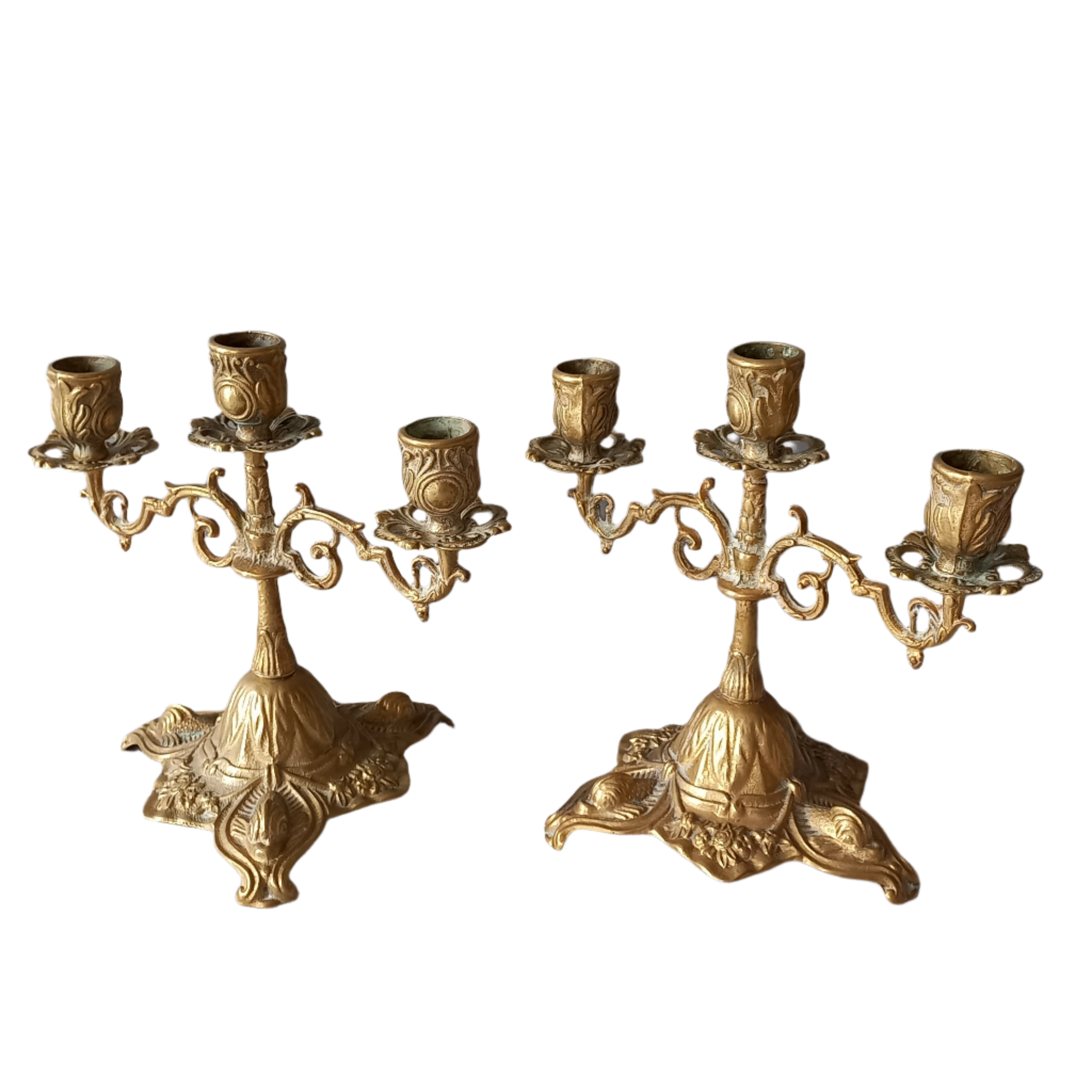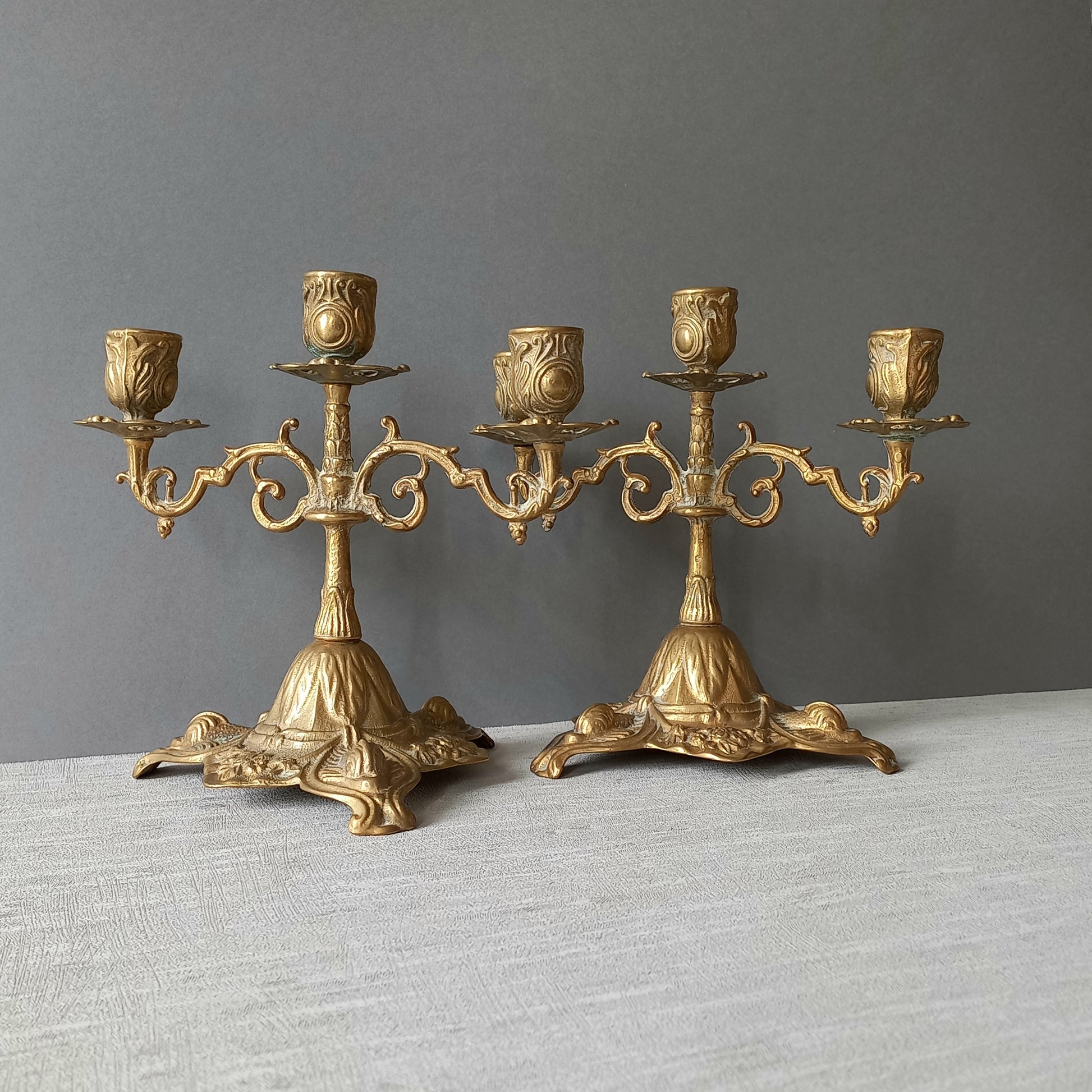 A stunning pair of decorative vintage brass/bronze candle holders, heavy candelabras of great quality that will look super in any home!